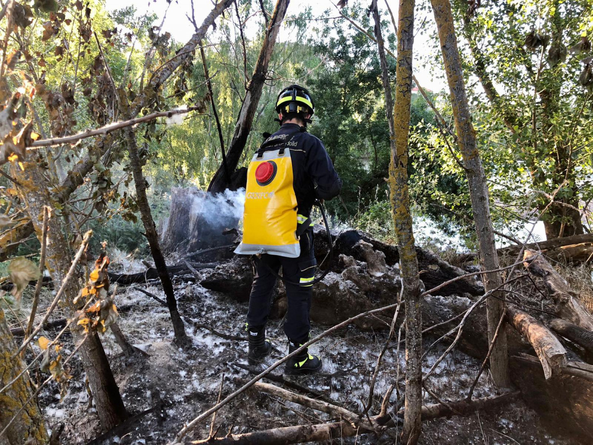 El suceso se produjo a las 20.07 horas y trabajaron en el lugar para sofocar las llamas durante una hora y diez minutos en la ribera del río junto al puente.