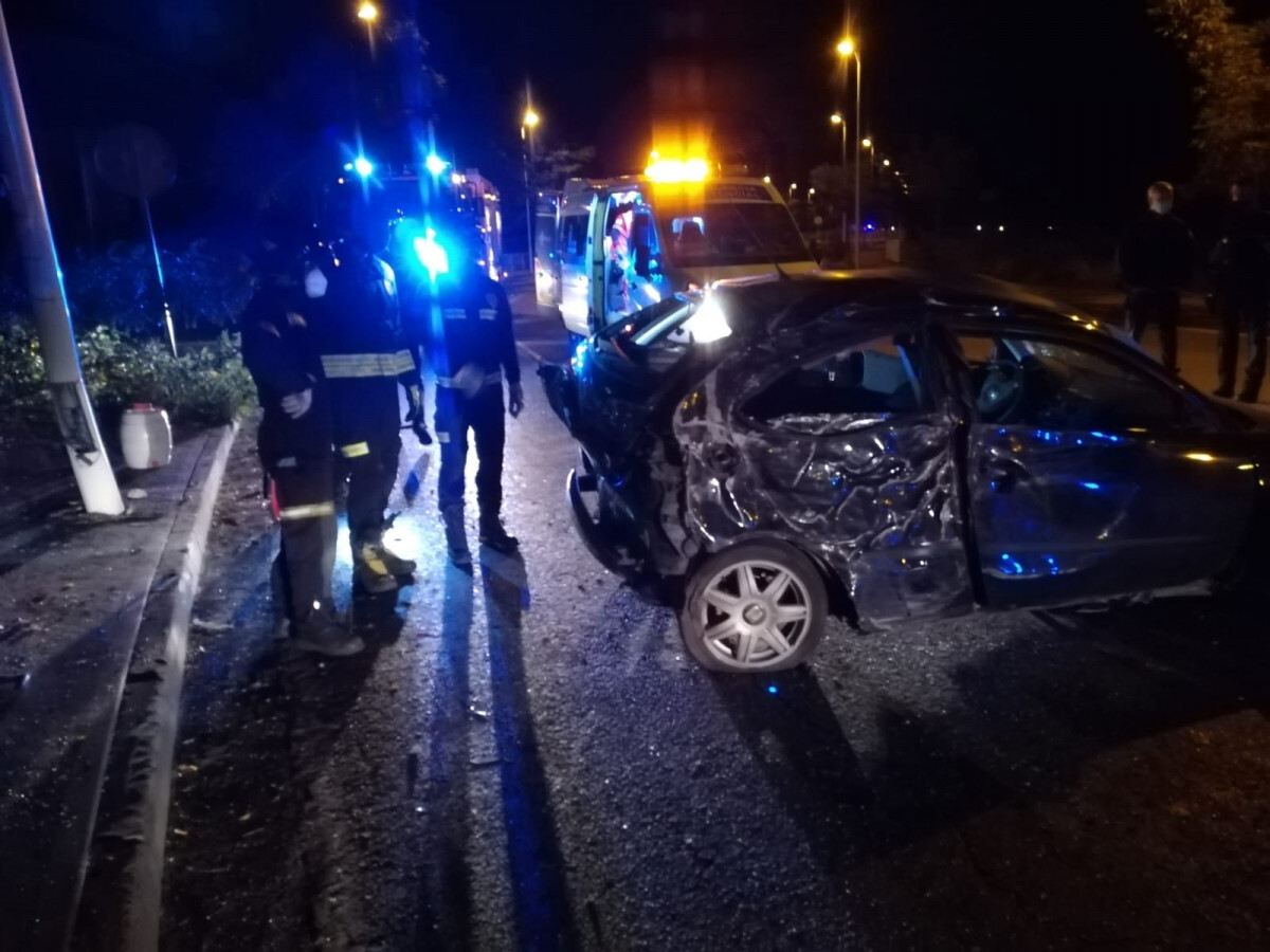 Dos heridos en una aparatosa colisión de un turismo contra una farola y un árbol en Ponferrada