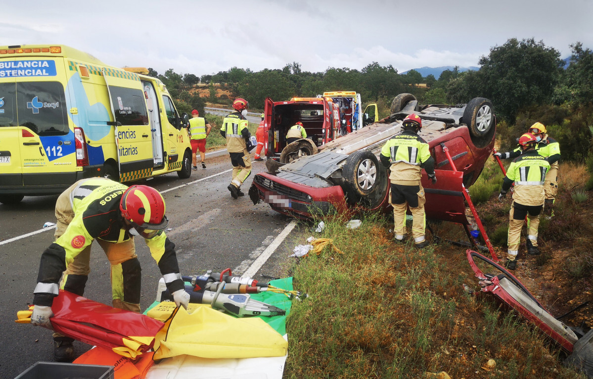 Dos heridos tras el grave vuelco de un turismo en Morasverdes