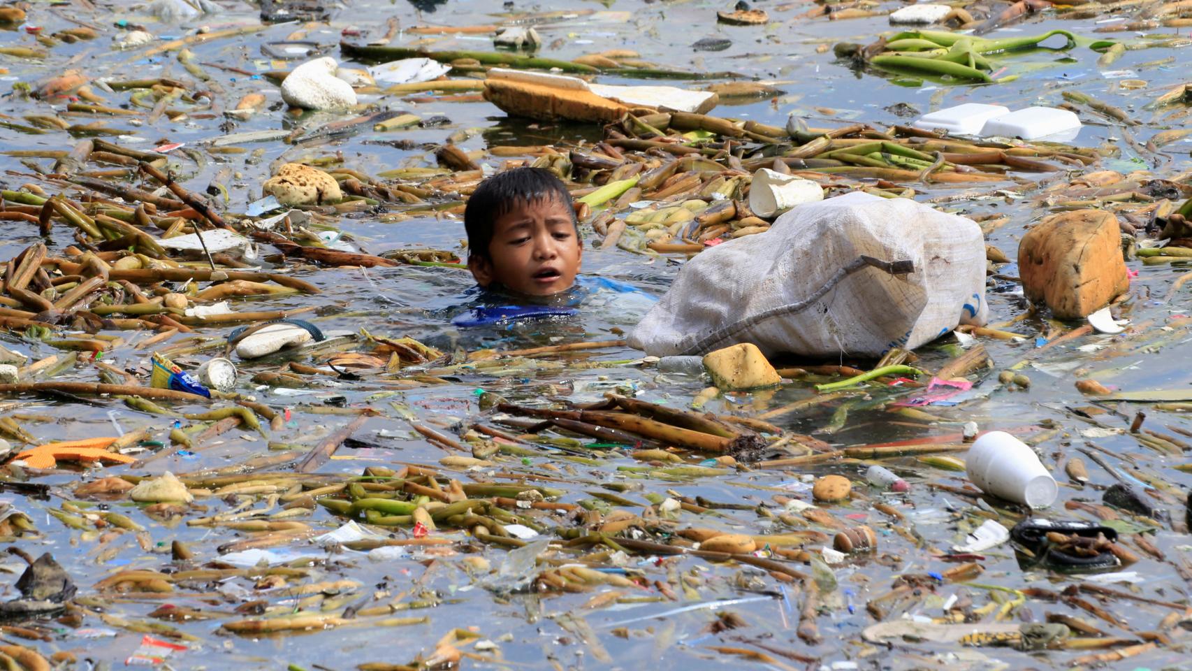 Bucear en la contaminación para ganarse la vida. Un niño filipino del poblado chabolista de Baseco nada entre los residuos de la bahía de Manila para recuperar botellas y envases de plástico que luego revenderá. REUTERS/Romeo Ranoco