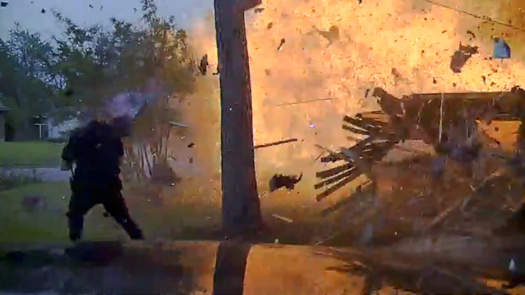Como en una película. La explosión provocada por un accidente de tráfico en el que un coche chocó contra un tubería de gas en Texas, grabada por la cámara de un coche patrulla. Hurst Police Department/via REUTERS