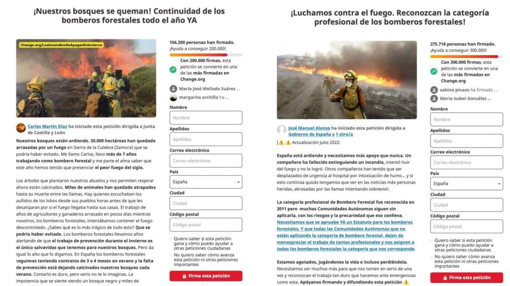 Carlos Martín Díaz, bombero forestal desde hace más de siete años, inició el pasado 21 de junio una recogida de firmas solicitando la continuidad del trabajo de los bomberos forestales durante todo el año para prevenir la propagación de nuevos incendios. En menos de un mes, ha logrado reunir más de 150.000 firmas, según informa la plataforma Change.org, donde lleva a cabo su iniciativa.