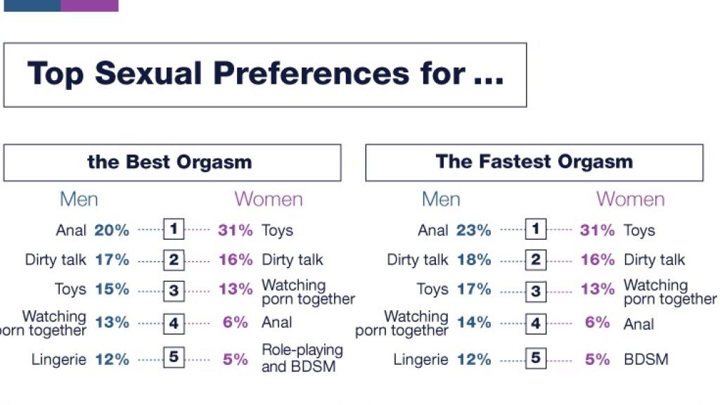 Si bien es cierto que el escenario que arroja la encuesta de este portal británico no puede considerarse de ninguna forma como un estudio científico, la realidad es que ofrece una visión aproximada de las preferencias sexuales que existen entre ambos géneros. Eso sí, los autores también avisan: "Las preferencias basadas en posiciones o actos pueden explicar cómo se desarrolla nuestra vida sexual con nuestra pareja. Sin embargo, esto sólo es la punta del iceberg. No tengas miedo a sumergirte en aventuras sexuales aún más emocionantes para tener el sexo más gratificante posible".