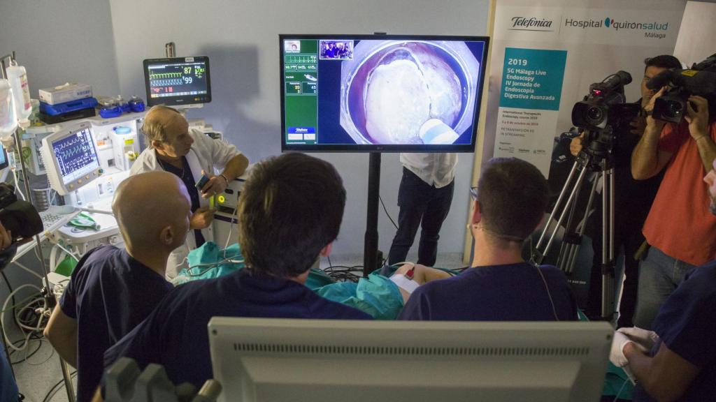 La presentación se realizó en el marco de la IV Jornada de Endoscopia Digestiva Avanzada, celebrada los días 3 y 4 de octubre. El congreso fue pionero al retransmitir en tiempo real, con tecnología 5G, siete cirugías endoscópicas digestivas. Ha sido el doctor Pedro Rosón Rodríguez, jefe del Servicio de Aparato Digestivo del Hospital Quirónsalud Málaga, desde la sala de endoscopia del centro andaluz quien ha llevado a cabo las operaciones con el asesoramiento, desde Japón, del doctor Katsumi Yamamoto, director del Endoscopy Center del Hospital de Osaka.