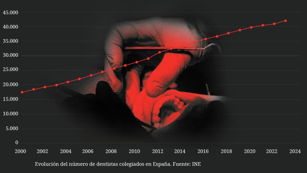 En el primer caso, el incremento fue del 71% hasta el curso 2022-2023. Un porcentaje irrisorio si se compara con el de dentistas colegiados: han crecido un 139% en 'sólo' 23 años, pasando de 17.538 a los 42.075 del pasado año. Las previsiones del Consejo no son precisamente a la baja. Para 2030, la cifra estará cercana a los 45.000.