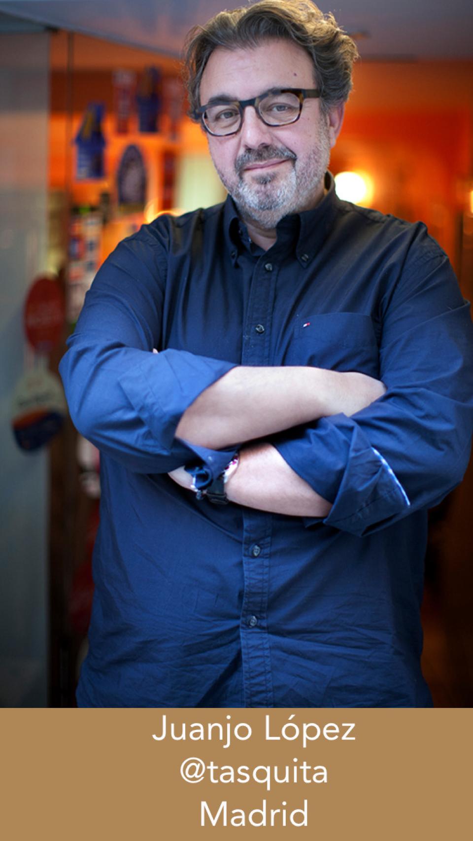El madrileño Juanjo López es un cocinero de corazón. Creció entre los fogones de el restaurante familiar ubicado en la calle Ballesta de Madrid, en el mismo local que hoy en día está La Tasquita de Enfrente, entonces regentada por sus padres. Es de ellos de donde Juanjo aprendió a cocinar respetando el producto con una sensibilidad que se aprecia en su filosofía de trabajo. Con su honestidad y amor al producto de máxima calidad, Juanjo López se ha posicionado como uno de los grandes cocineros españoles reconocido y respetado por el mundo de la gastronomía. Ha conseguido que La Tasquita de Enfrente, premiado con tres cuchillos Cocinillas como uno de los 100 mejores restaurantes de Madrid, sea un lugar de culto para muchos amantes de la gastronomía, pero sobre todo para muchos cocineros, tanto nacionales como internacionales, que hacen una parada obligatoria en su casa cuando viajan a Madrid.