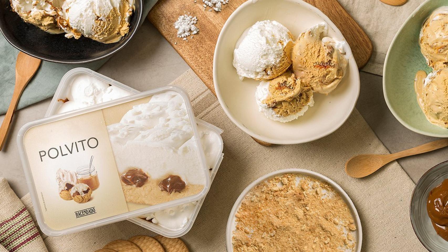 El helado de Polvito Hacendado rinde homenaje a este postre con una base de helado de galleta cubierto por una capa de dulce de leche y terminando con una capa de helado de merengue.