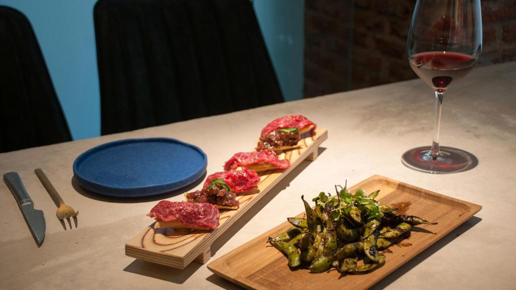 Asimismo, la calidad premium de las materias primas empleadas consigue llevar al comensal a una experiencia nunca antes vivida en la capital. Ejemplo de ello son sus sofisticados pintxos asiático-vascos, entre los que destacan el dim sum de rabo de vaca betizu, yema de codorniz curada, demi-glacè de su cocción e Idiazábal ahumado; el pan croissant tostado al fuego con crema de gochujang y angulas a la brasa; el ‘baocata’ brioche de costillar glaseado en barbacoa japonesa y a la brasa; o la trilogía de pintxos de vacas vasco-japonesas -cenital de entrecotte de vaca vasca, waygu y steak tartar.
