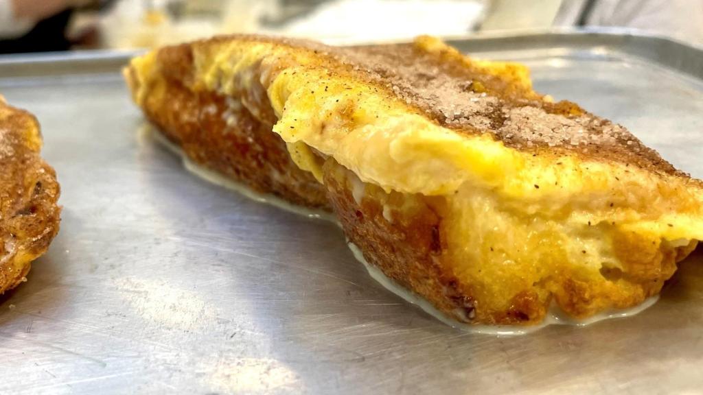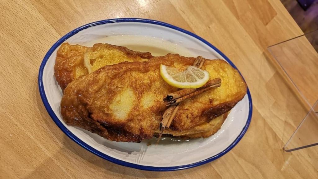 Se sirve de un pan brioche o bombón, elaborado en el propio obrador, bañado en leche fresca Priégola con cáscara de limón y canela y protegido con huevo campero. Las fríen en AOVE y las empapan en almíbar. Si bien la receta clásica es la que más triunfa, no hay que perderse la que coronan con crema pastelera o las torrijas del príncipe, bañadas en chocolate. Su popularidad es tal que hasta han llegado a Japón con su tienda en Nagasaki.