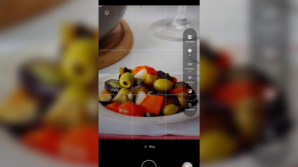 Pulsando sobre la opción [Más] accedemos a los modos de cámara adicionales como el [Macro], que en ocasiones puede ser útil a la hora de fotografiar comida, por ejemplo, cuando no hemos tenido tiempo de montar un bodegón y nos interesa hacer un primer plano en el que se vea solo la comida que hay en el plato. El modo [Pro] nos permite realizar fotografías ajustando manualmente algunos parámetros.