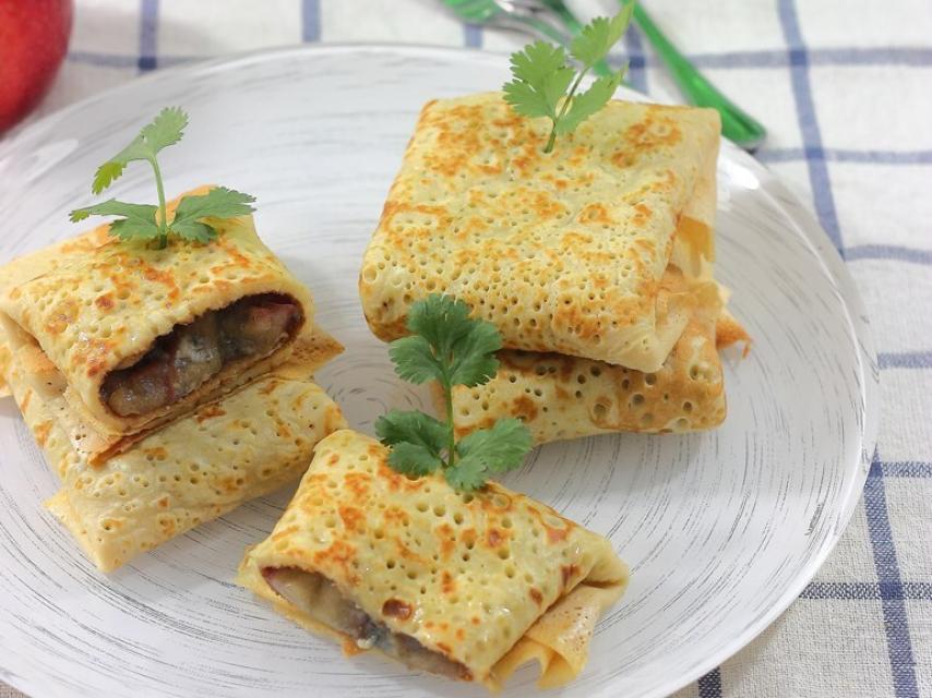 - Servimos las crepes poniendo una cucharada de relleno en el medio y doblándola tal como veis en la galería.