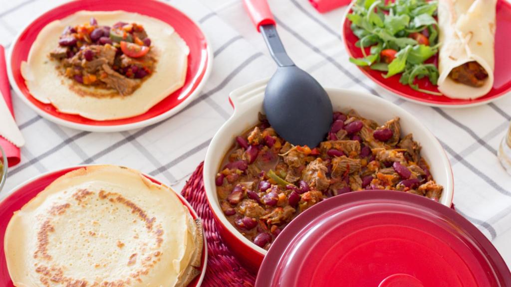 Crepes de cerveza rellenas de chili con carne, receta fácil