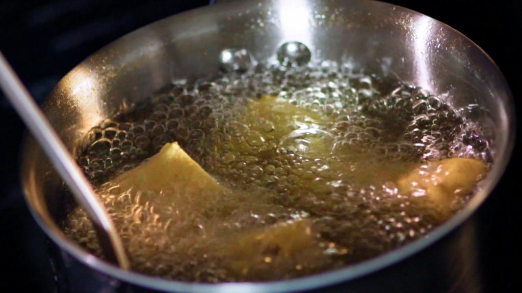 Freímos en abundante aceite y escurrimos en papel absorbente.