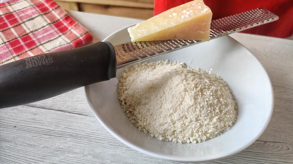 Lo primero que hay que hacer es rallar el queso con un rallador fino. Lo recomendable para mi gusto es utilizar quesos curados pero también podéis hacerlo con quesos tiernos que ya vengan rallados, aunque perderemos la textura crujiente/cremosa de la galleta.