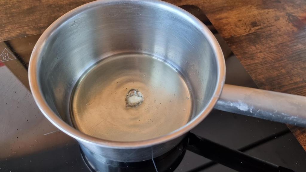 En el aceite sofreír la pizca de ajo ligeramente a fuego medio para que no se queme.
