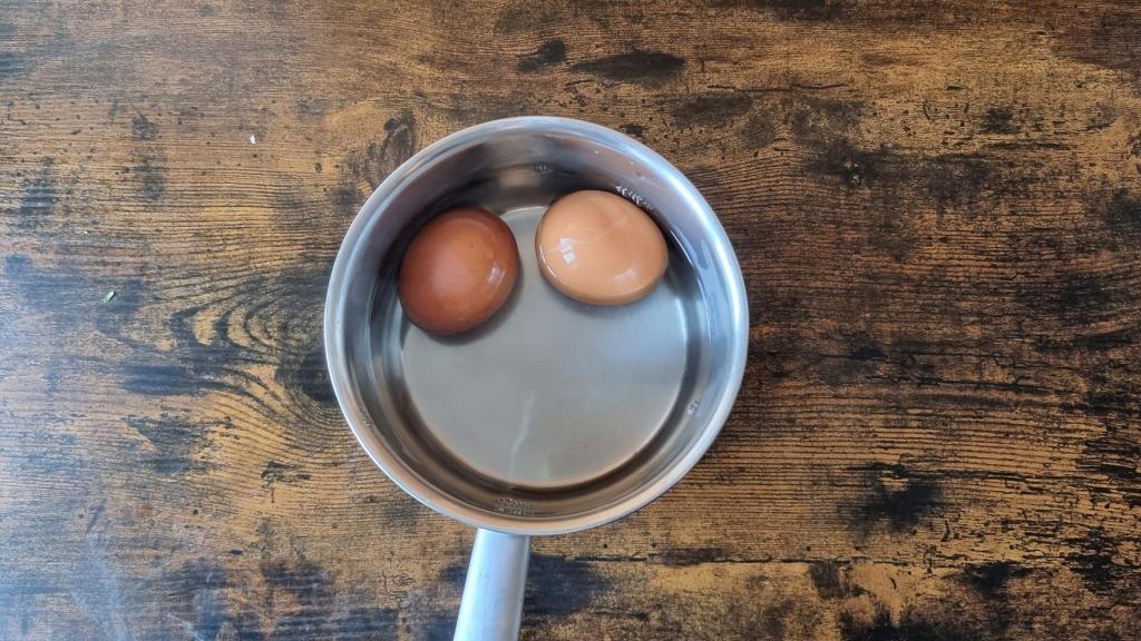 Por otro lado, cocer también los huevos hasta que estén duros. Son unos 10 minutos y luego rápidamente hay que enfriar los huevos en un baño de agua muy fría. Pelar los huevos y trocearlos.