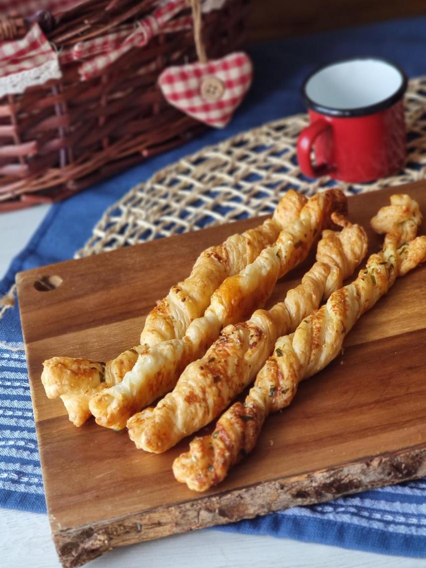 Esta receta de palitos de hojaldre se puede adaptar a los sabores que cada uno quiera y queda preciosa encima de una mesa de aperitivos, para montar un buffet, en un cátering o también en el centro de mesa si tenemos invitados. Se pueden hacer en el horno pero también en la freidora de aire y los podemos tener listos en el congelador para simplemente hornear cuando se desee. Recursos fáciles para momentos de caos.