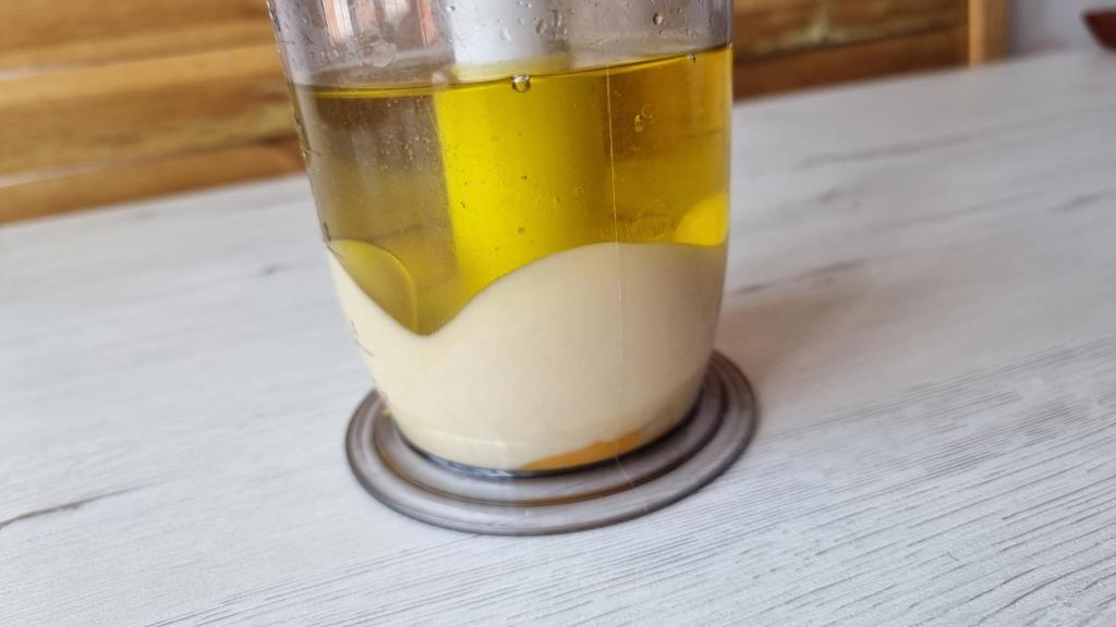 Montar la mahonesa de ajo haciendo una pasta con el ajo, con la ayuda de un mortero o de un machacador de ajos. Colocar la pasta con el huevo en el fondo del vaso batidor. Cubrir con el aceite de oliva suave y emulsionar bajando la batidora hasta el fondo a velocidad suave. Sin dejar de accionar la batidora, ir subiendo poco a poco, lentamente, para que el aceite entre paulatinamente en la emulsión y que así la mahonesa no se corte. Cuando ya esté completamente ligada, incorporar el zumo de limón y poner a punto de sal y mezclar bien, ya con una cuchara.