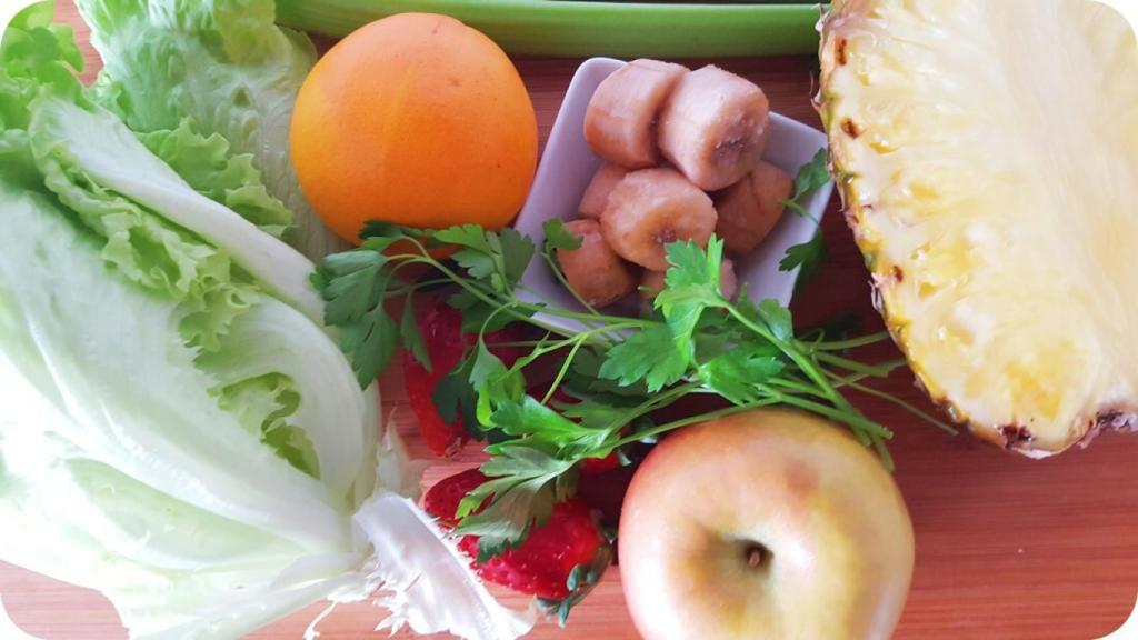 En esta ocasión se trata de un batido de lechuga y fresas que también lleva otras frutas y vegetales, pero que bien fresquito entra estupendamente.