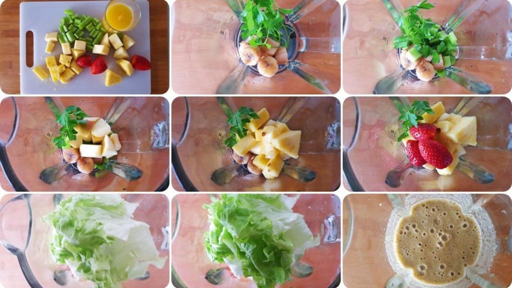 Receta fácil con explicación detallada y fotografías de cada uno de los pasos a seguir para preparar un batido de lechuga y fresas.