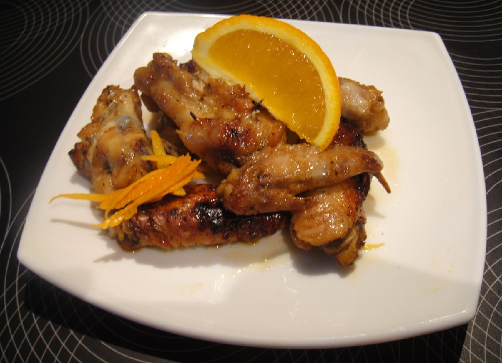 Como estaba falta de ideas cogí los más de 20 libros que tengo en casa y me puse a rebuscar. Todo era demasiado complicado, étnico, o moderno. Ya casi desesperada y a punto de hacer huevos fritos con patatas encontré un librillo de publicidad de un supermercado que tenía algunas recetas una gran sorpresa que me ha solucionado la papeleta: Alitas de pollo con salsa de naranja.