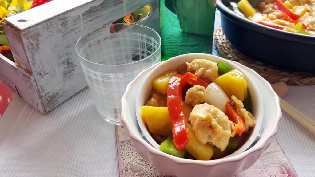 El pollo con piña, que podéis preparar siguiendo la receta tal cual, o usando solo cebolla y piña para que sea más parecido al de los chinos, es una receta muy fácil y que podemos tener lista en poco más de media hora, lo que la hace perfecta para cualquier ocasión.