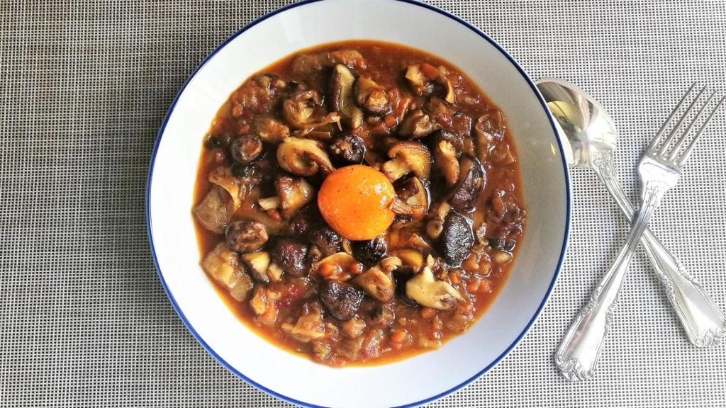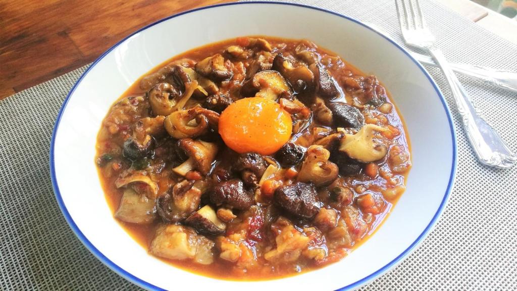Oreja de cerdo guisada con setas shiitake y yema curada, un manjar al alcance de cualquier bolsillo y explicado para novatos.