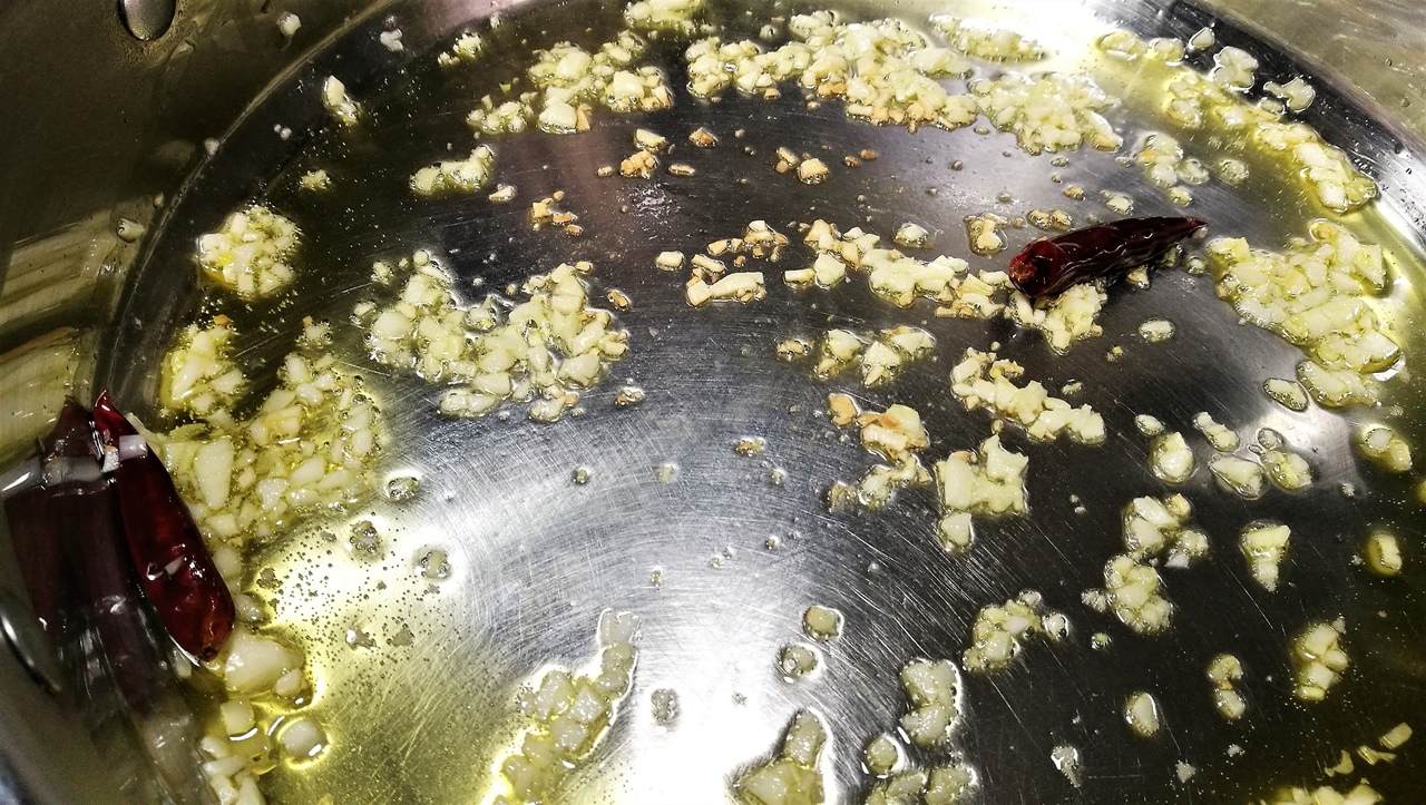 Picamos muy finamente los ajos y las cebollas y rehogamos en aceite de oliva con unas cayenas al gusto. Es importante que seamos comedidos con la cantidad de aceite, ya que luego añadiremos chorizo y panceta, que ya de por sí tienen mucha grasa, y ese exceso irá a nuestra salsa.
