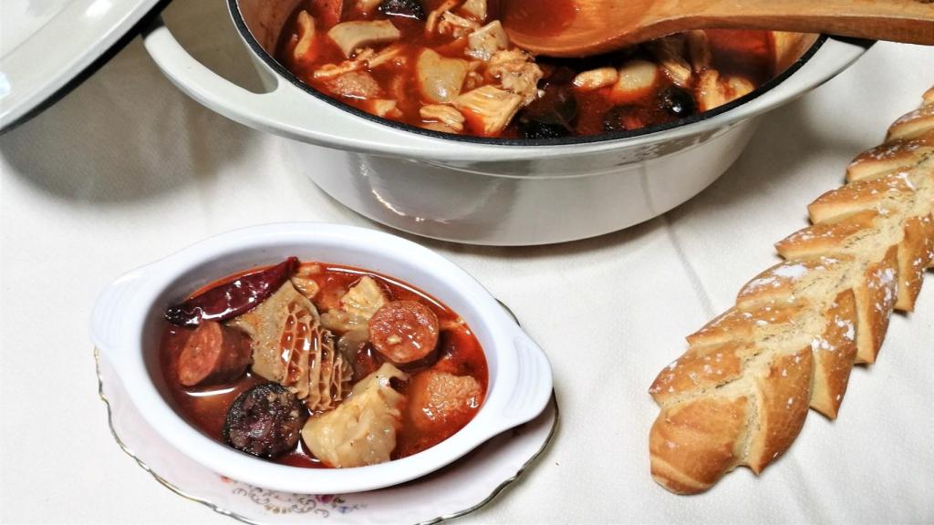 Es un plato que, siempre que respetes mínimamente la receta, está bueno le eches lo que le eches, así que no tengas miedo en  tunear la receta dejando de añadir unas cosas y agregando otras. A mí desde luego el extra de la manita de cerdo me parece un elemento importante, porque da un plus de untuosidad a la salsa sencillamente espectacular.