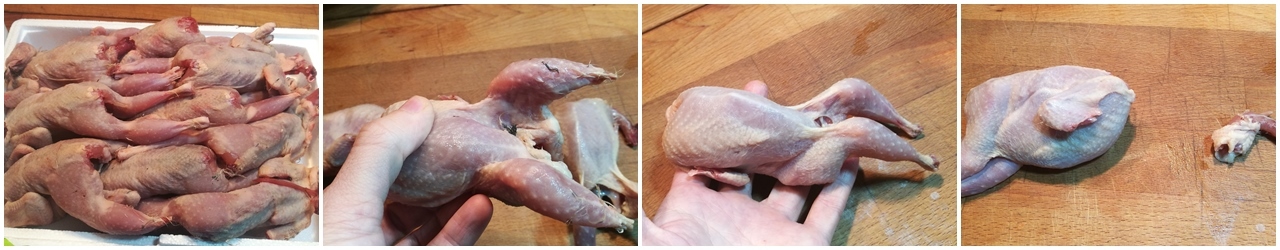 1. En primer lugar, sacamos los muslos y las alas de las codornices, así como ambas pechugas