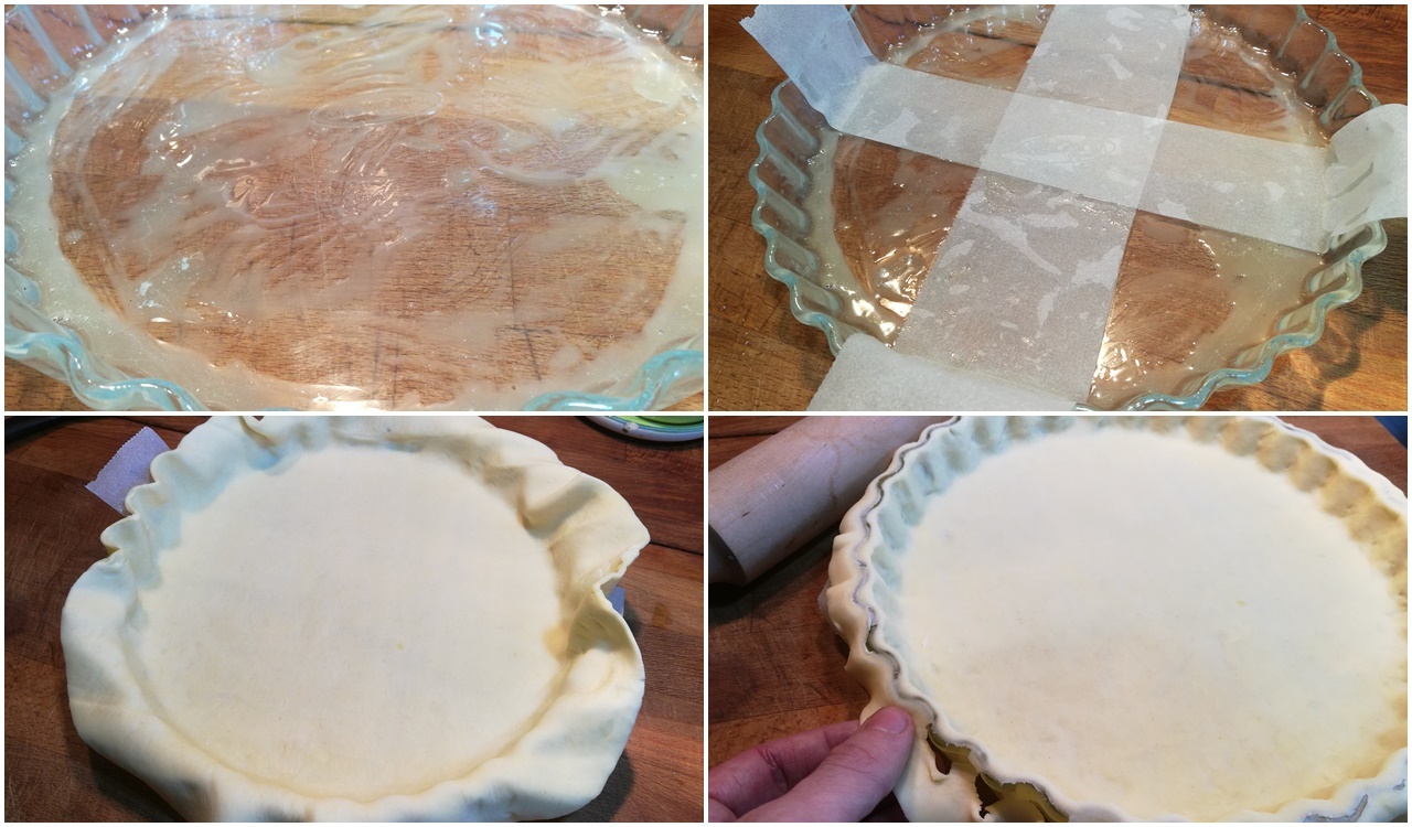 Horneamos la masa quebrada con las legumbres durante 20 minutos a 200º C. Una vez pasado ese tiempo, retiramos las legumbres con mucho cuidado (quemarán un montón), así como el papel de hornear. Terminamos de cocer la masa quebrada 5-10 minutos más para que se cocine bien en el interior.