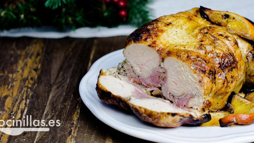 Es lo bueno que tiene el pollo, que podemos usarlo para un plato de dieta como el anterior, un guiso como la pepitoria o todo un señor asado de domingo como este pollo relleno al horno. Si sobra, no lo calientes, córtalo fino como si fuese un fiambre y verás qué delicia.
