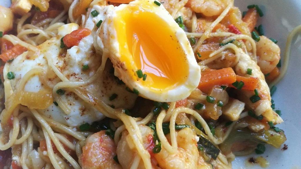 El milagro de los panes y los peces, un filete de pollo de 100 g con el que una persona se quedaría con hambre, lo juntas con las verduras que encuentres por la nevera, unos huevos y unos fideos y en menos de media hora comida lista para alimentar a tres personas. Así son los fideos thai con pollo.
