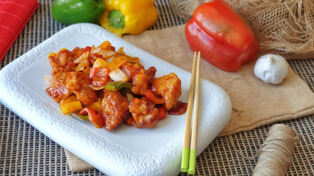 Cerdo agridulce, rebozado crujiente y salsa deliciosa