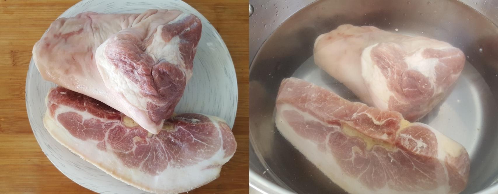 El primer paso siempre es desalar el lacón. Los lacones normalmente se compran salados, aunque cada vez es más frecuente encontrarlos "en el punto de sal", que supuestamente estarían listos para cocinar pero, para mi gusto, también tienen excesiva sal por lo que es conveniente darles un remojo. Si el lacón es de estos últimos, con una noche será suficiente, si no tendremos que tenerlo un par de días en remojo cambiando el agua cada doce horas.
