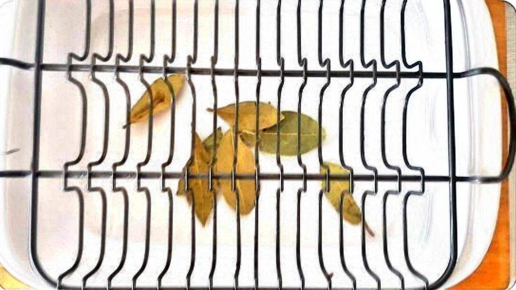 En una bandeja profunda -preferiblemente de metal- ponemos un par de vasos de agua y un puñado de hojas de laurel.