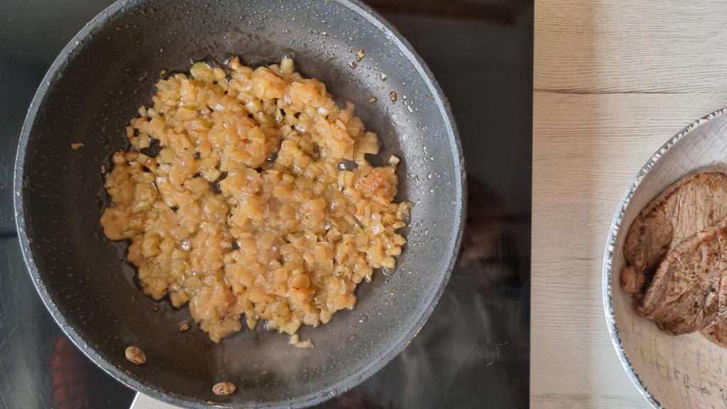 Por supuesto, una vez elaborada la salsa siempre se tiene la opción de triturarla completamente para que no tenga trozos de cebolla enteros y así todos se la coman y la disfruten sin saber lo que tiene. Que muchas veces el secreto está ahí: no ver lo que se come. Es posible también, en lugar de hacer los filetes a la plancha, empanarlos ligeramente y freírlos, pero de esta manera ganaríamos más grasa en el conjunto.