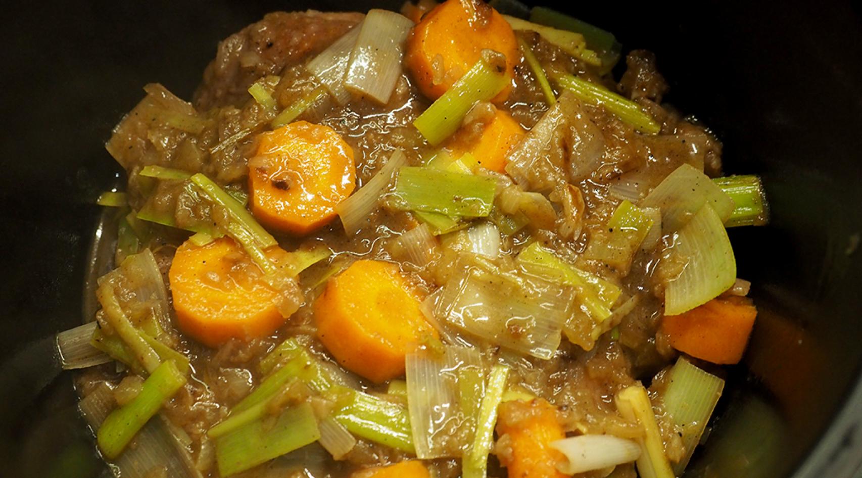 Volcamos el contenido de la sartén a la Crock-pot y la ponemos 8 horas a baja temperatura.