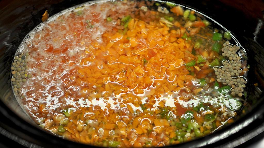 Lentejas con verduras en olla de cocción lenta Crockpot