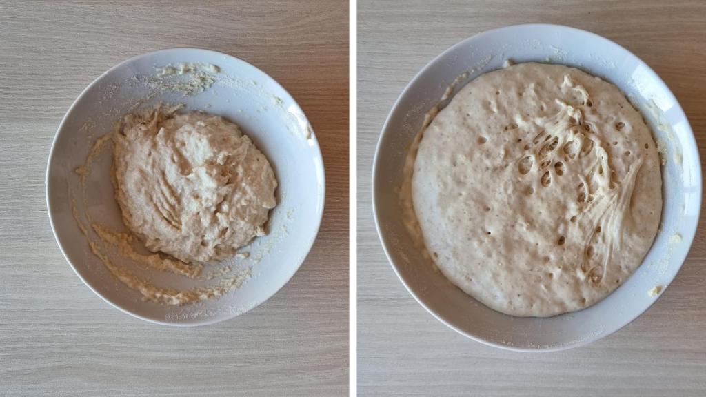 En un bol pequeño, mezclar todos los ingredientes del prefermento. Tapar con un plástico y dejar fermentar hasta que esté bien burbujeante y haya crecido.