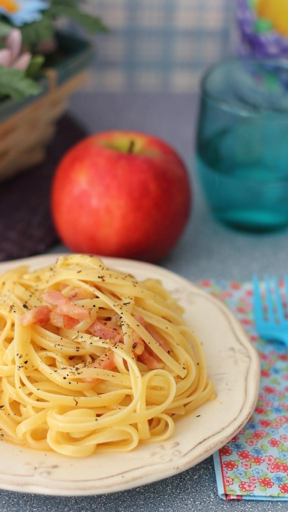 Es curioso, porque aunque aquí cuando se piensa en carbonara, se piensa en una salsa con nata bastante contundente, en mi casa, cuando éramos pequeñas mi madre hacía los tallarines carbonara solo con huevo -incluida la clara- y, para no engrasarlos demasiado, les ponía jamón serrano o jamón cocido en vez de bacon. Decía que la receta se la había dado una señora italiana que había conocido en la playa y es que mi madre era muy de esas cosas, muy de playa, muy de hablar con todo el que se cruzaba y muy de acabar intercambiando recetas.