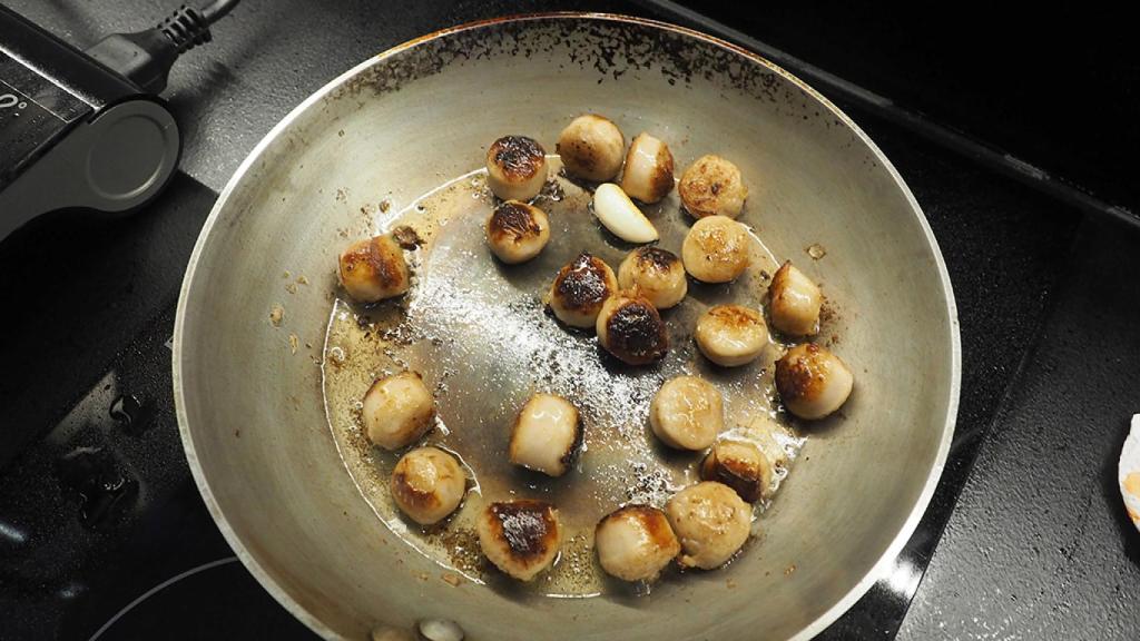 Las cortamos en trozos de unos 2 centímetros y tostamos a fuego medio-alto hasta que se doren bien.