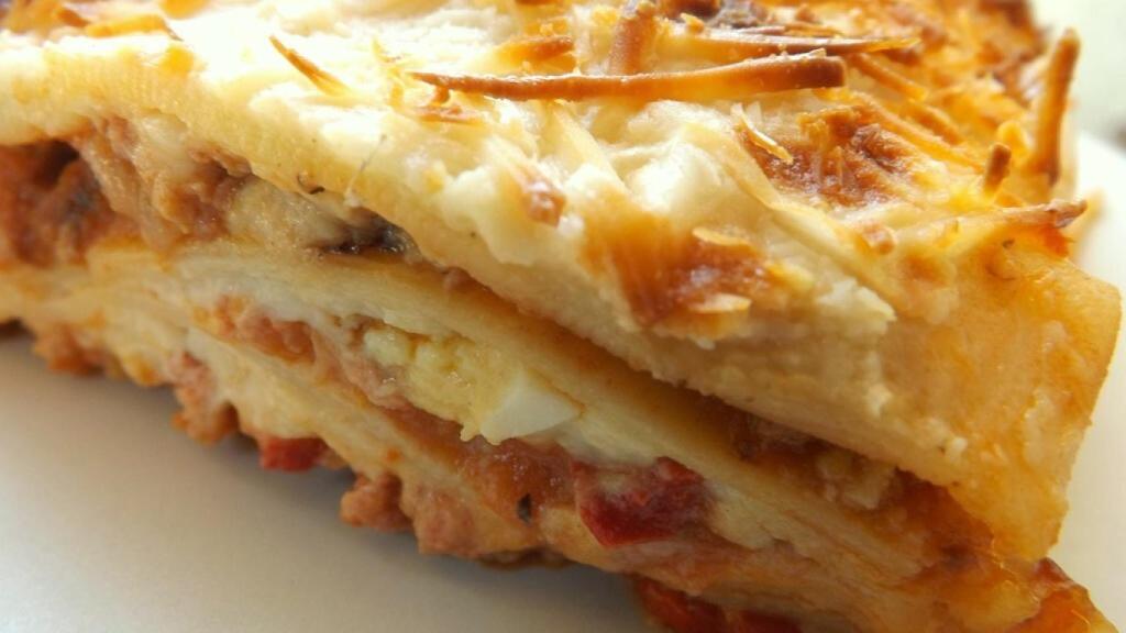 Es la receta más popular, consiste en placas de lasaña rellenas de una salsa boloñesa con gran cantidad de carne picada y cubiertas con una generosa cantidad de bechamel y queso rallado que se gratinan hasta tener una costra crujiente. Eso es la tradicional lasaña boloñesa.
