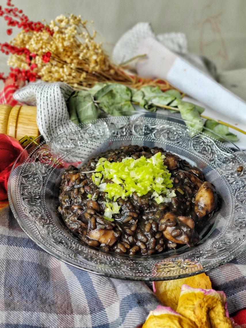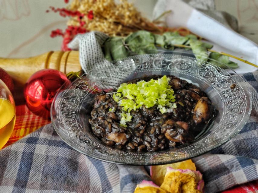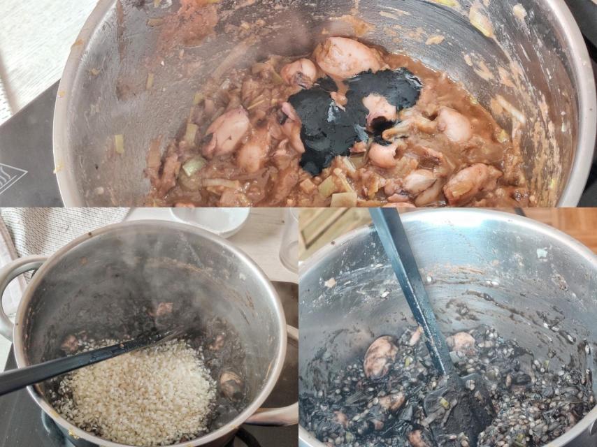 Arroz negro meloso de chipirones y puerro, descubre todos los trucos