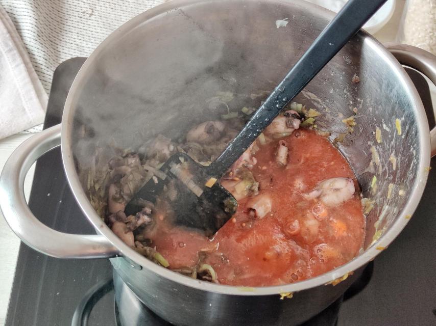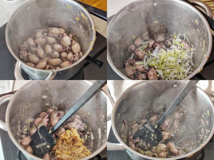 Incorporar entonces los chipirones y saltearlos bien durante un par de minutos.