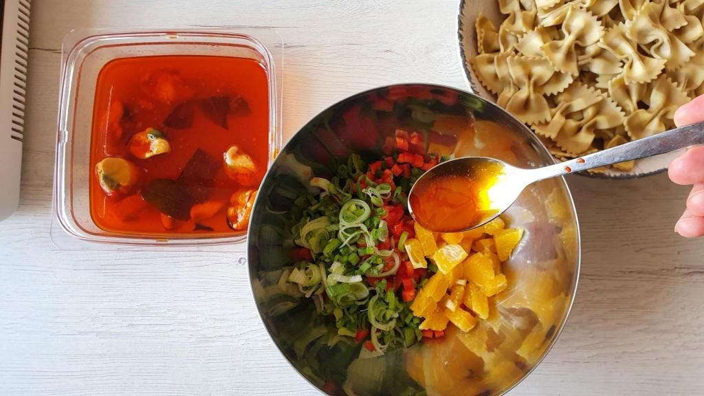 Cómo hacer ensalada de pasta con mejillones en escabeche