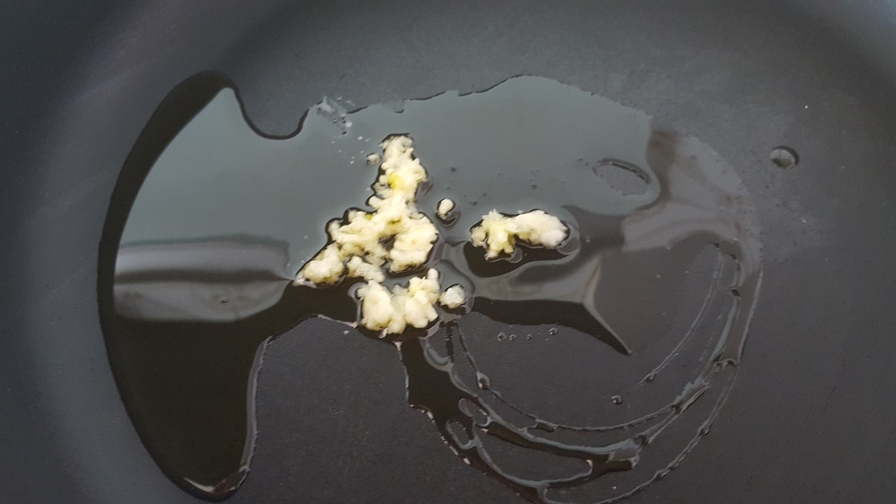En una sartén o en una cazuela baja que reparta bien el calor ponemos a sofreír los dientes de ajo prensados a fuego bajo hasta que empiecen a soltar su aroma característico.