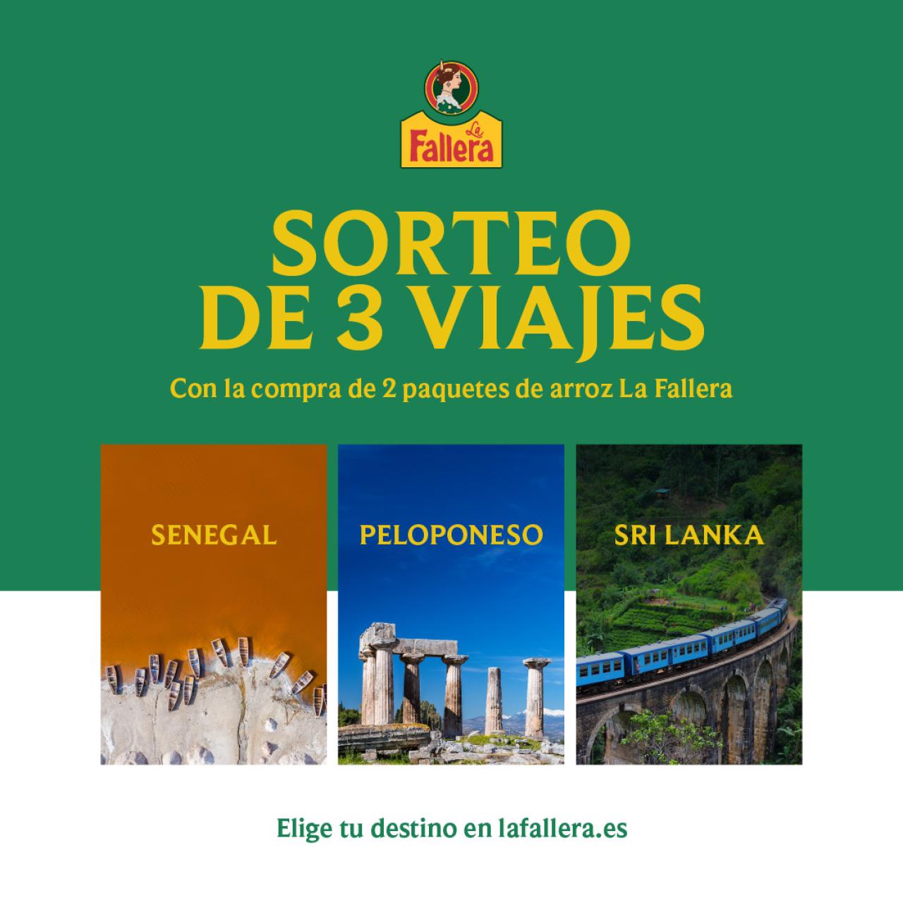 Para convertirte en Embajador de la Paella y llevar su receta hasta los territorios más exóticos del planeta, simplemente tienes que elegir el destino al que te gustaría ir (Peloponeso, Senegal o Sri Lanka), comprar 2 paquetes de Arroz La Fallera de la variedad que quieras, hacer una foto del ticket de compra y subirlo a la web.