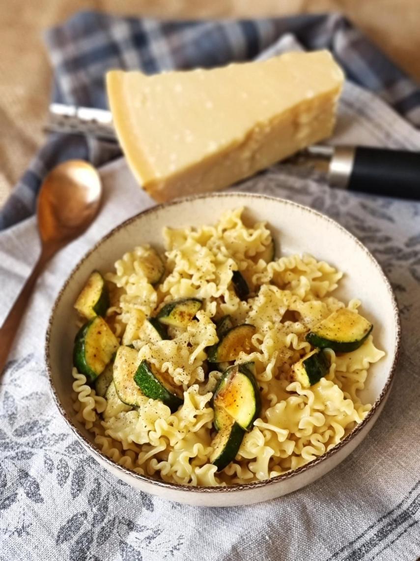Pasta con calabacín, queso y pimienta negra, un plato delicioso y asequible