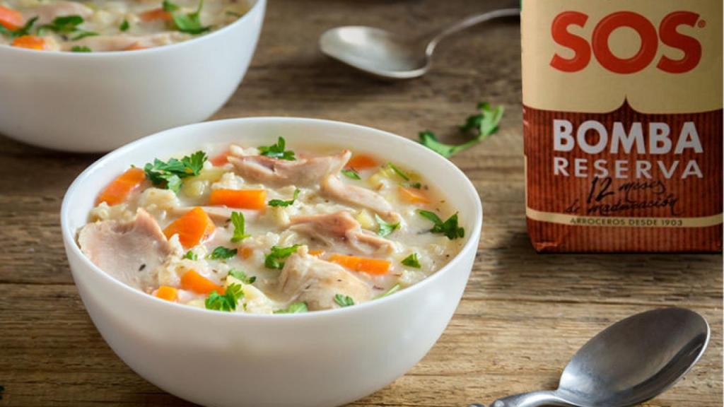 Para inaugurar la temporada, SOS nos propone este puchero de arroz con pollo hecho con SOS Bomba, un arroz que destaca por ser el que más caldo absorbe de todas las variedades existentes (puede llegar a triplicar su volumen). Esto hará que, si usamos un caldo sabroso como el de este puchero, el arroz también resultará muy sabroso.